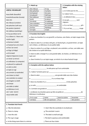 Homes and furniture On the LearnEnglish Kids website you will find a whole range of activities for teaching the topic ‘Homes bedroom with sentence completion and a wordsearch. Again this is useful when you are beginning the topic. ... Access Document